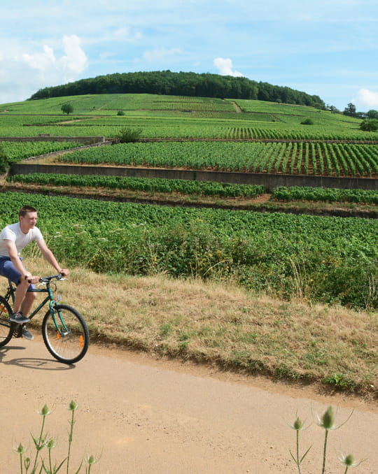 Sur les routes de campagnes, admirez les magnifiques paysages viticoles ! Cette voie traverse les plus beaux villages de la Route des grands crus, dont des noms mondialement connus : Pommard, Volnay, Meursault, Puligny-Montrachet… Faites halte chez les vignerons qui vous accueilleront avec convivialité et simplicité pour découvrir les vins du terroir.