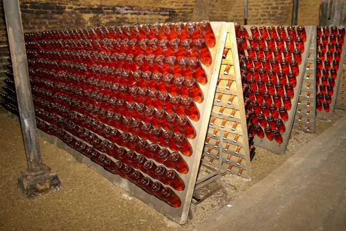 - Le repos et le remuage des bouteilles tête en bas, ce qui permet le dépôt de fermentation dans le goulot.