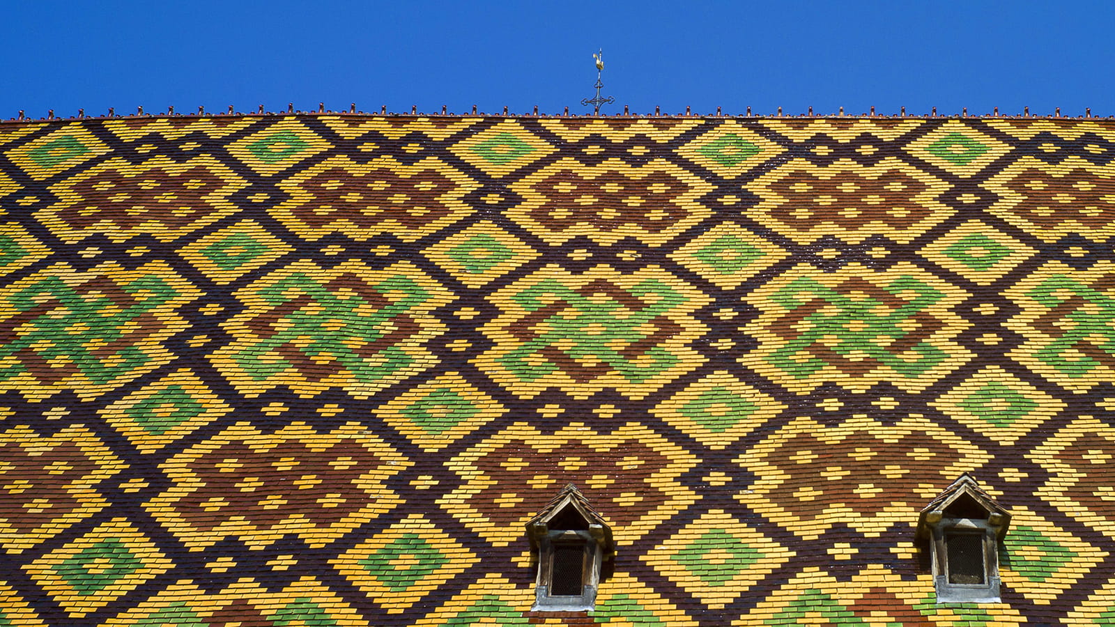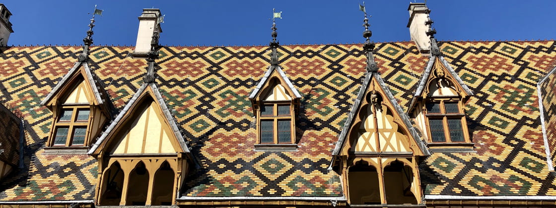 Grand symbole de la Bourgogne, les Hospices de Beaune sont connus internationalement. Les différentes parties de l’Hôtel-Dieu ont été construites à plusieurs époques, ainsi, la manière dont ont été fait les toits polychromes correspond au style de l’époque de construction. Il s'agit donc du lieu idéal pour voir l’évolution des toitures polychromes et en prendre plein les yeux !